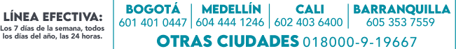 La Línea Efectiva siempre estará a tu disposición para aclarar cualquier inquietud relacionada con los procedimientos técnicos, médicos y administrativos de nuestros Seguros de Vida, ARL Riesgos Laborales y Seguros Generales.